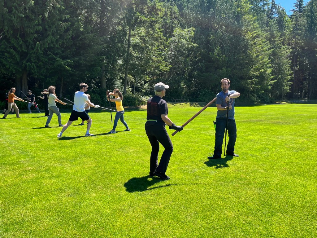 Firstly, we want to commend each and every member for their dedication and enthusiasm during our session on Fiore’s Largo play with the longsword. It was fantastic to see everyone making such progress and really diving into the techniques. Your hard work is truly paying off, and it’s evident that our collective skills are growing stronger with each meeting.